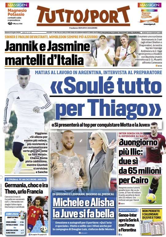 Prime pagine Prime pagine Tuttosport: “Soule tutto per Thiago” Segui Ilovepalermocalcio su Google News Redazione Ilovepalermocalcio Luglio 6, 2024 L’edizione odierna di Tuttosport dedica la prima pagina al mercato della Juventus. Continue Reading Previous Prima pagina Gazzetta dello Sport: “Juve, anche Abraham”Next Prima pagina Repubblica Palermo: “La città violentata”