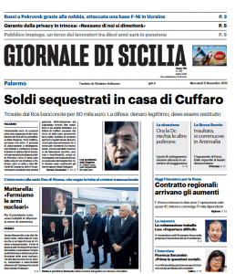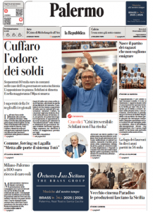 Prima pagina Repubblica Palermo: “Cuffaro l’odore dei soldi”
