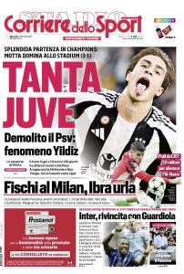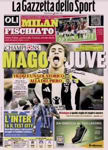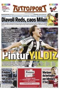L'edizione odierna di Tuttosport dedica un titolo in prima pagina al gol di Yildiz in Champions.