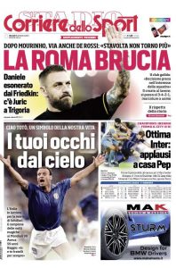 L'edizione odierna de Il Corriere dello Sport dedica un titolo in prima pagina alla morte di Totò Schillaci.