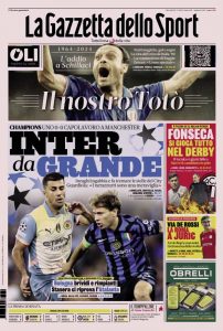 L'edizione odierna de La Gazzetta dello Sport dedica un titolo in prima pagina alla Champions e alla Juventus.