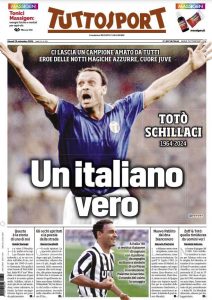 L'edizione odierna di Tuttosport dedica un titolo in prima pagina alla morte di Totò Schillaci.