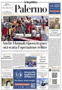 L'edizione odierna de La Repubblica Palermo dedica un titolo in prima pagina al relitto del Bayesian con l'ultimo corpo all'appello.