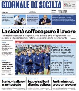 L'edizione odierna de "La Repubblica - Palermo" dedica la prima pagina alla siccità in Sicilia.