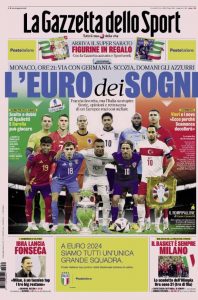 L'edizione odierna de "La Gazzetta dello Sport" dedica la prima pagina ad Euro 2024.