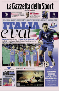 L'edizione odierna de "La Gazzetta dello Sport" dedica la prima pagina all'Italia in vista dell'Europeo.