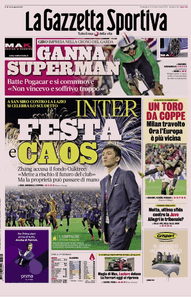 L'edizione odierna de "La Gazzetta dello Sport" si sofferma sull'Inter e le accuse di Zhang.