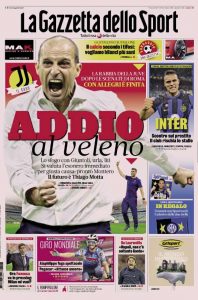 L'edizione odierna de "La Gazzetta dello Sport" dedica la prima pagina al futuro di Allegri lontano dalla Juventus.