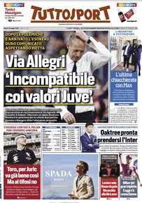 L'edizione odierna di Tuttosport si sofferma in prima pagina sull'esonero di Allegri.