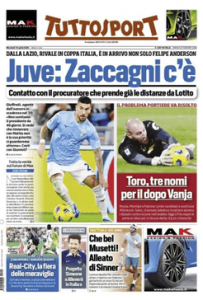 L'edizione odierna di Tuttosport dedica la prima pagina alla Juventus e a Zaccagni.