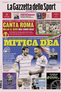 Prima pagina Gazzetta dello Sport: “Mitica Dea”