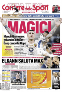 L'edizione odierna de "La Gazzetta dello Sport" dedica la prima pagina al match tra Milan e Roma in Champions League.