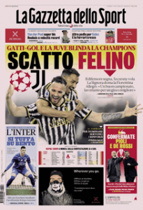 L'edizione odierna de "La Gazzetta dello Sport" dedica la prima pagina alla Juventus.