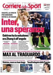 L'edizione odierna de "Il Corriere dello Sport" dedica la prima pagina all'Inter.