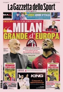 L'edizione odierna de "La Gazzetta dello Sport" dedica la prima pagina al Milan.