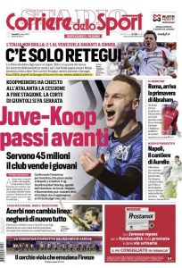 L'edizione odierna di Tuttosport dedica la prima pagina alla Juve e a Koop.