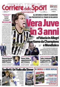 L'edizione odierna de "Il Corriere dello Sport" dedica la prima pagina alla Juventus.