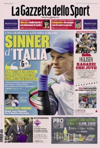 L'edizione odierna de "La Gazzetta dello Sport" dedica la prima pagina a Sinner.