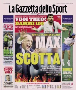 L'edizione odierna de "La Gazzetta dello Sport" dedica la prima pagina alla Juve e ad Allegri.