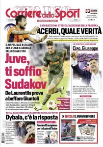 Prima pagina Corriere dello Sport: “Juve, ti soffio Sudakov”
