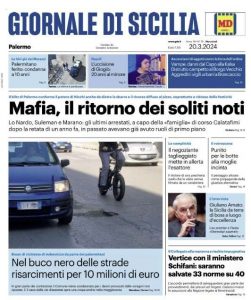 L'edizione odierna de "Il Giornale di Sicilia" dedica la prima pagina alle bche in città e ai veicoli da risarcire.