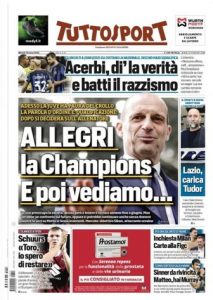 L'edizione odierna di Tuttosport dedica la prima pagina alla Juventus, ad Allegri e alla Champions.