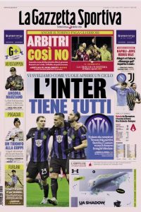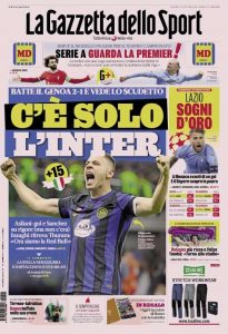 L'edizione odierna de "La Gazzetta dello Sport" dedica la prima pagina all'Inter.