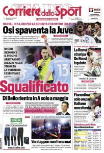 L'edizione odierna de "Il Corriere dello Sport" dedica la prima pagina all'arbitraggio in Lazio-Milan e la punizione di Rocchi.