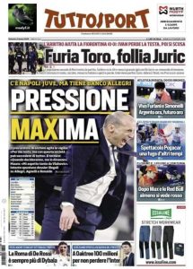 L'edizione odierna di Tuttosport dedica la prima pagina alla Juve e ad Allegri.