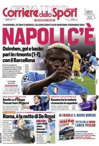 L'edizione odierna de "Il Corriere dello Sport" dedica la prima pagina al Napoli e il pari contro il Barcellona.
