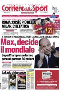 L'edizione odierna de "Il Corriere dello Sport" dedica la prima pagina ad Allegri e al rinnovo con la Juve.