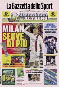 L'edizione odierna de "La Gazzetta dello Sport" dedica la prima pagina al Milan sconfitto ieri in Europa League.