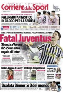L'edizione odierna de "La Gazzetta dello Sport" dedica la prima pagina alla Juve e all'Inter.