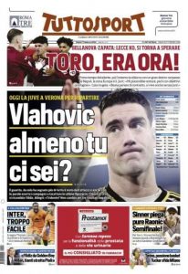 L'edizione odierna di Tuttosport dedica la prima pagina alla Juventus.