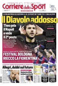 L'edizione odierna de "Il Corriere dello Sport" dedica la prima pagina alla vittoria del Milan sul Napoli.