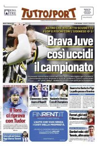 L'edizione odierna de "La Gazzetta dello Sport" dedica la prima pagina alla Juventus.