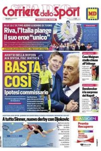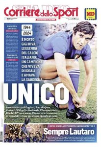 L'edizione odierna de "Il Corriere dello Sport" dedica la prima pagina alla scomparsa di Gigi Riva.
