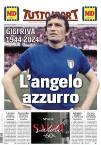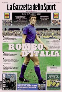 L'edizione odierna de "La Gazzetta dello Sport" dedica la prima pagina alla scomparsa di Gigi Riva.