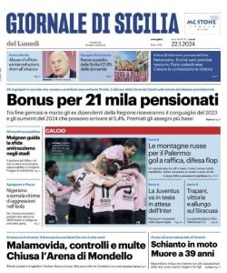 L'edizione odierna de "Il Giornale di Sicilia" dedica il titolo principale della Prima Pagina al bonus per i pensionati. Non...