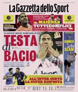L'edizione odierna de "La Gazzetta dello Sport" dedica la prima pagina alla vittoria della Juventus contro il Lecce.