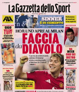 Prima pagina Gazzetta dello Sport: “Avanti Sinner”