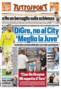Prima pagina Tuttosport: “Juve Sancho in arrivo”