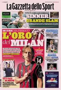 Prima pagina Gazzetta dello Sport: “L’oro del Milan”