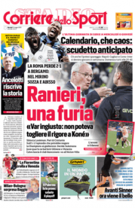 Prima pagina Corriere dello Sport: “Ranieri è una furia”