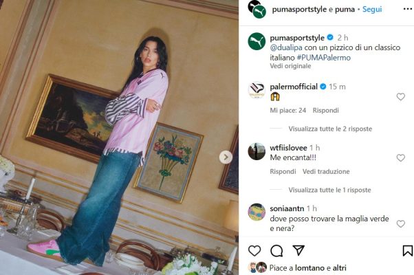Continua la Dua Lipa-mania. Attraverso i propri account ufficiali, Puma ha pubblicato qualche altro scatto della famosissima cantante che veste con la maglia del Palermo e le scarpe rosanero: