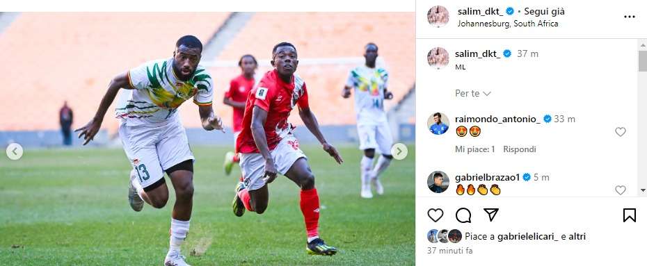 Diakité tramite un post sui social ha pubblicato qualche scatto sul proprio profilo Instagram: