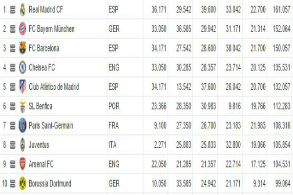 E’ stata aggiornata la classifica del Ranking Uefa per club, che vede il Palermo mantenere il 123° posto con 14854 punti a pari merito con la Sampdoria. Tra le squadre italiane spicca la Juventus in ottava posizione. La seconda italiana in classifica è il Napoli 16°, terza compagine il Milan 24°. Di seguito le prime dieci posizioni: