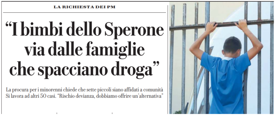 L’edizione odierna de “La Repubblica” si sofferma su una questione molto delicata, quella che vedrebbe 57 bambini dello Sperone via dalle proprie famiglie.