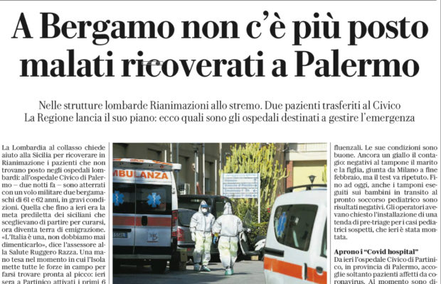 Repubblica: “A Bergamo non c’è più posto, malati ricoverati a Palermo”