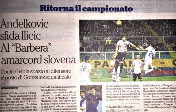 Repubblica: “Andelkovic sfida Ilicic. Al Barbera amarcord slovena”